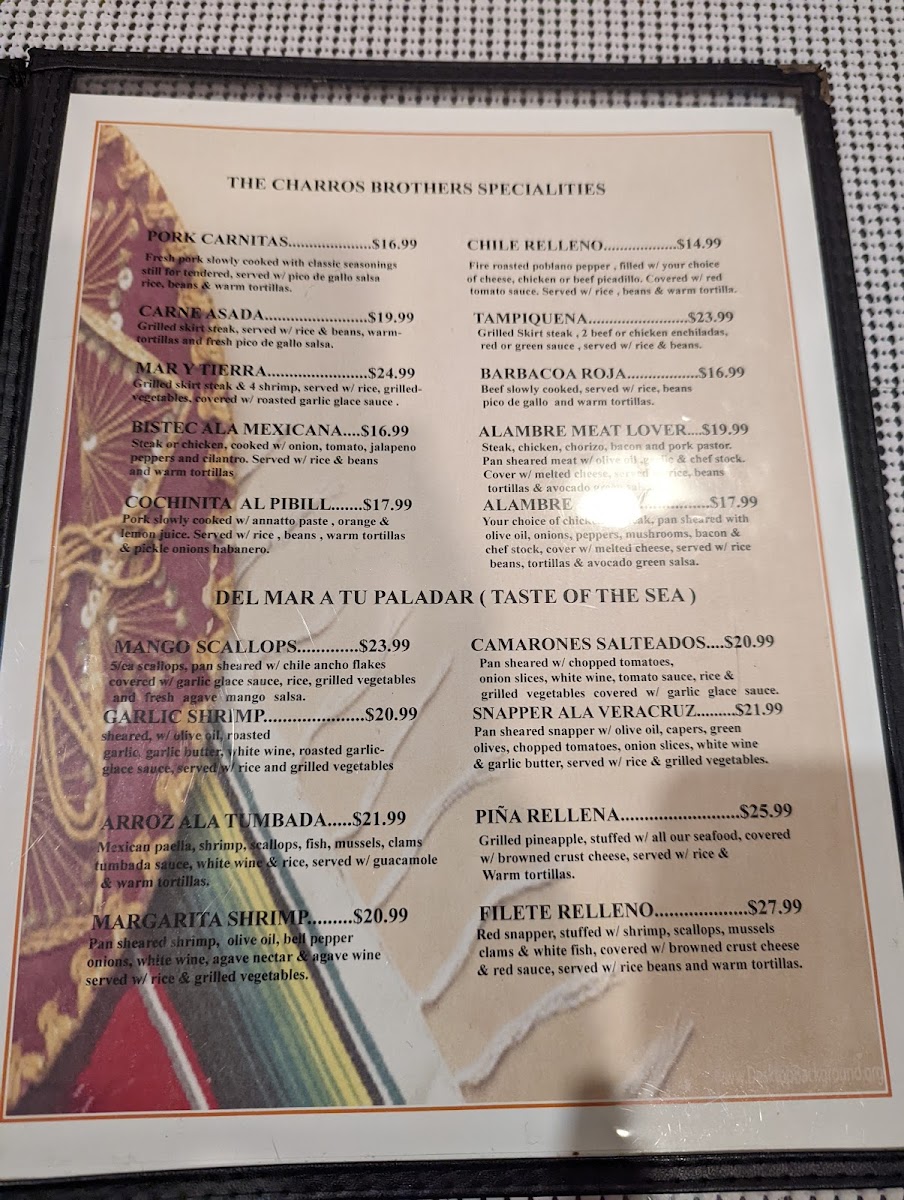 Don’t forget to satisfy your sweet tooth with irresistible desserts like Fried Ice Cream and Churros at $5.25 each. Each dish is infused with love and authenticity, making Charros Brothers a delightful stop that feels like a fiesta for your taste buds!